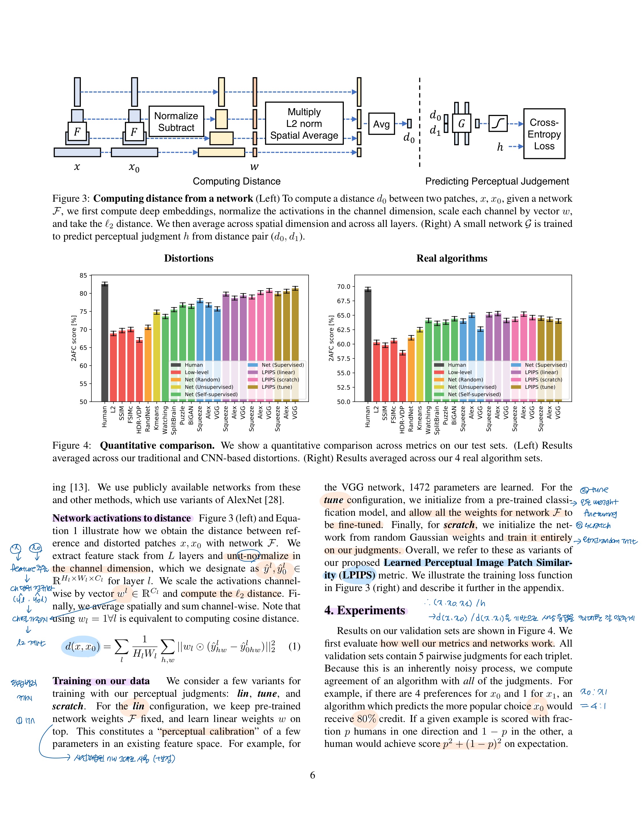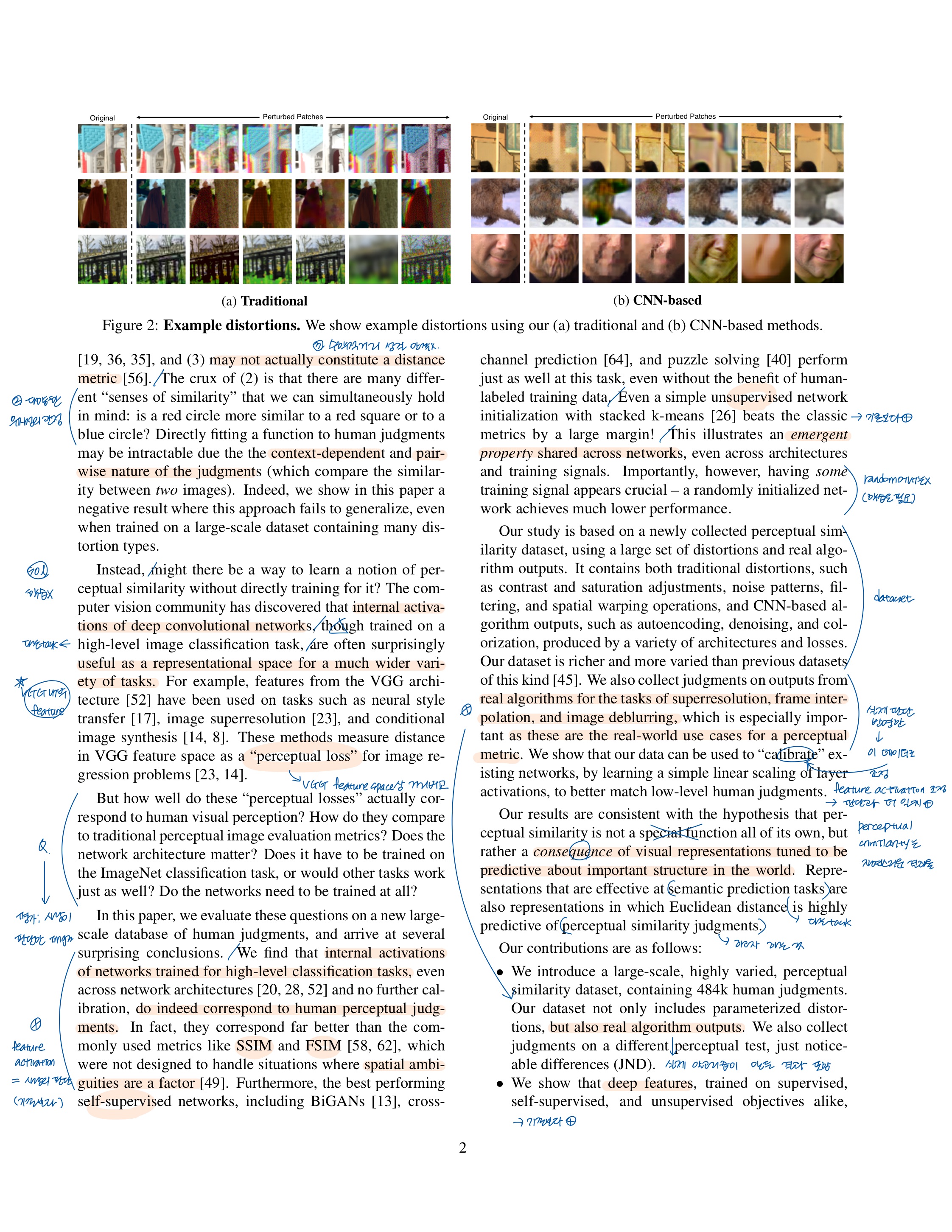 - 전통 + CNN 왜곡 데이터로 perceptual similarity metric을 학습 가능?