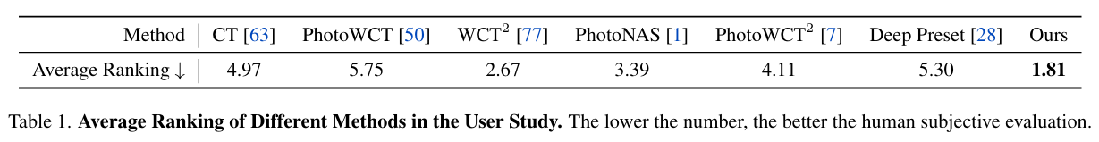 - 평가 기준: style/content similarity, photorealism, 색감의 시각적 만족도